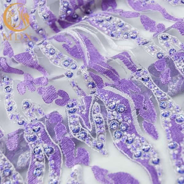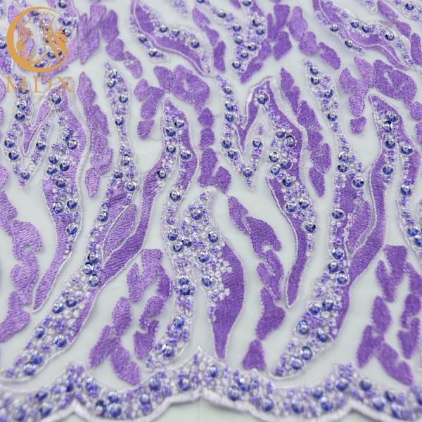 Factory Direct Price Purple Beaded And Sequin Embroidery Handmade Lace Fabric