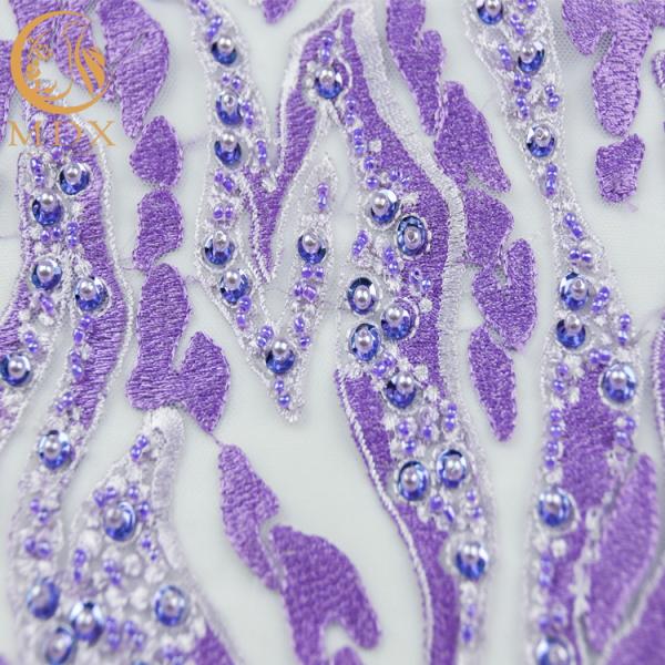 Purple Beaded Handmade Lace Fabric Embroidery Water Soluble For Garment Images |